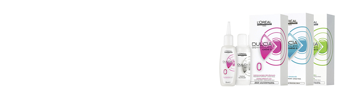 L'Oréal Dulcia Advanced formula, enriched with Ionéne G, helps you achieve a natural-looking curl or wave. Highly cationic, it adheres to the hair and helps protect against breakage from brushing. Dulcia Advanced protects the feeling of nourishment in the hair while forming curls. Hair stays looking smooth and soft, for a perfect modern perm.