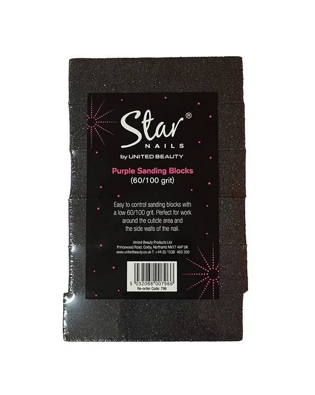 Star Nails Purple 3-way Sanding Block - 60/100 grit. Pack of 6.
