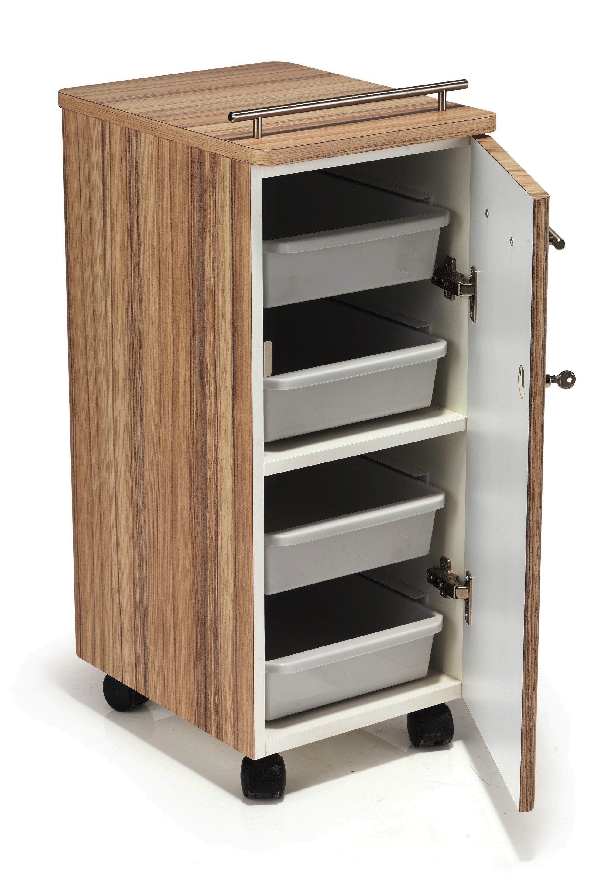 - Fixed shelf with 4 sliding trays