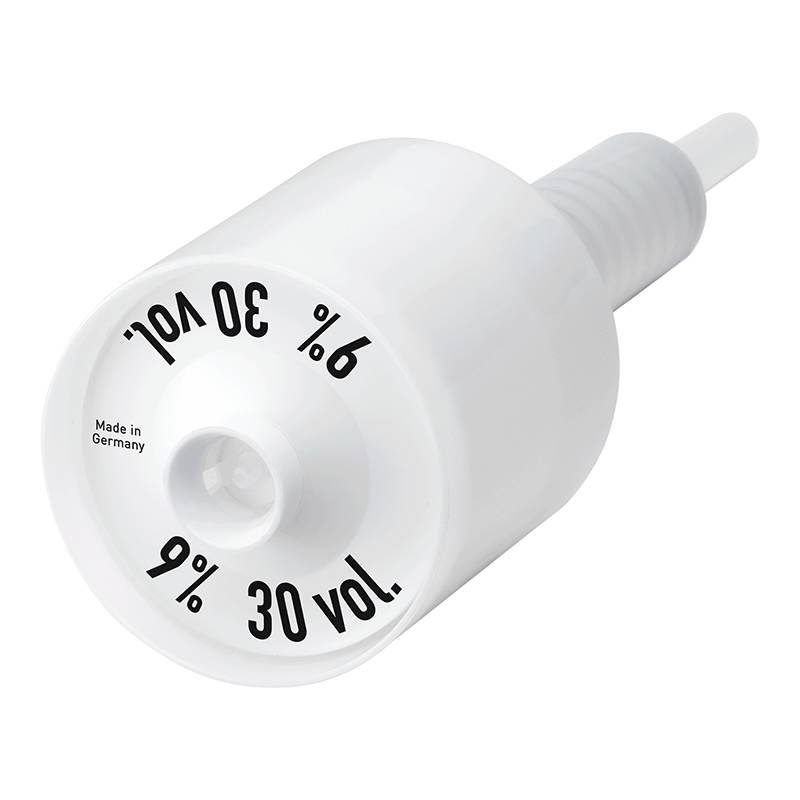 Using Goldwell's Depot System, this handy pump quickly, cleanly and accurately measures and dispenses Developer Lotion.
