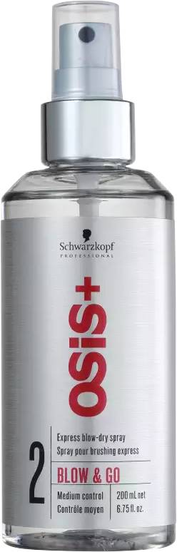 OSiS+ Blow & Go is a medium hold express blow dry spray for luxurious smoothness and combatting frizz. Non-sticky formula.