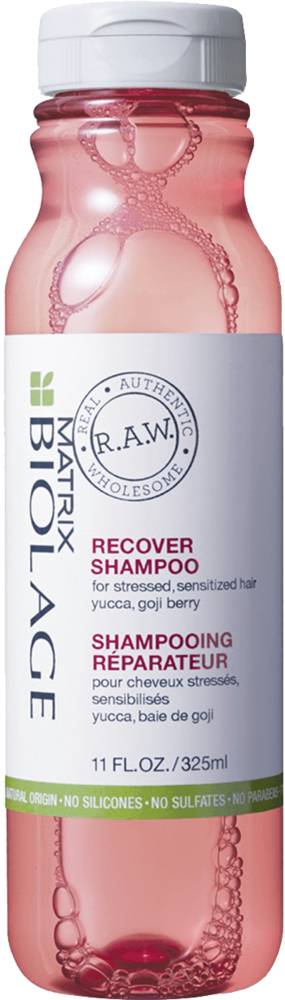 Biolage RAW Recover Shampoo has an improved formula with natural-origin emollients from sources such as coconut. Recover Shampoo's formula with yucca and goji berry helps restore shine to stressed, sensitised hair and leaves it feeling replenished.