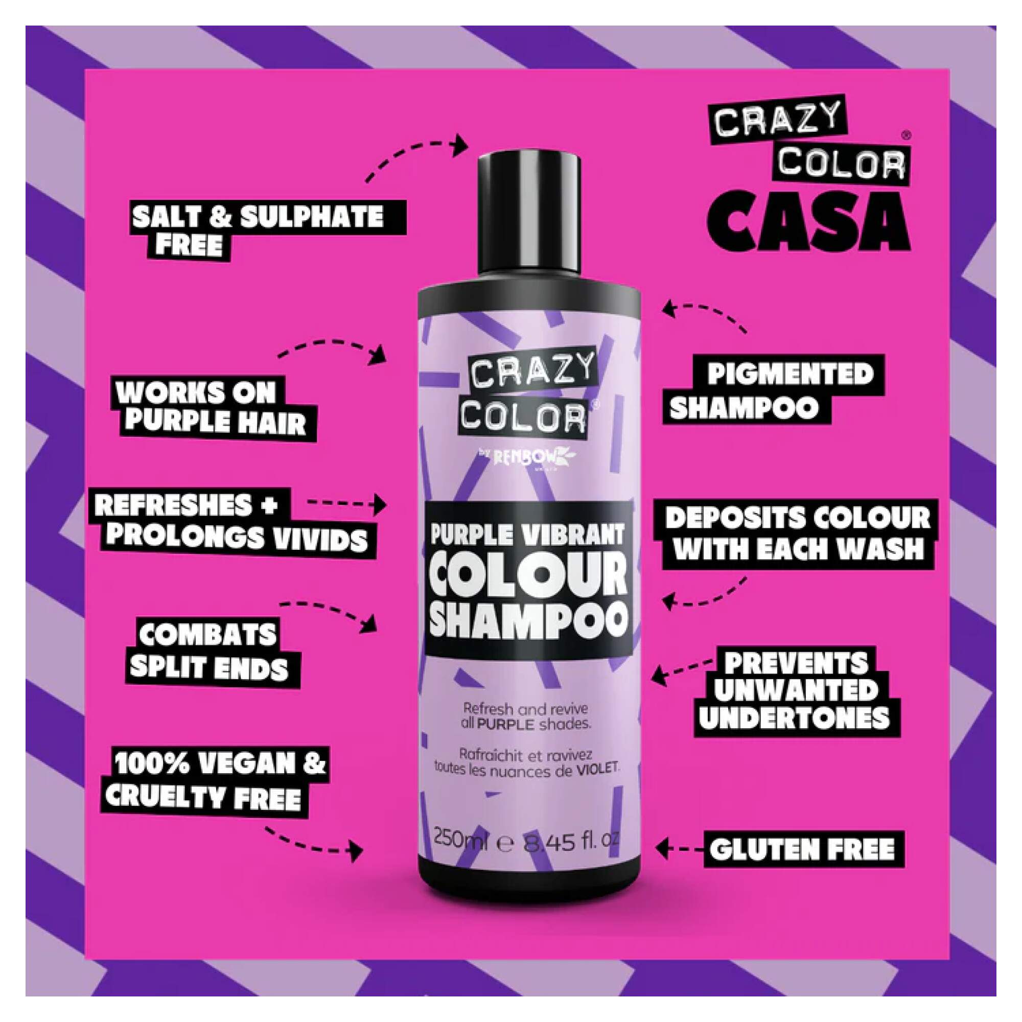 It works with any purple shade and has a Sulphate and Salt free formula, eliminating colour fade, dry hair and split ends.