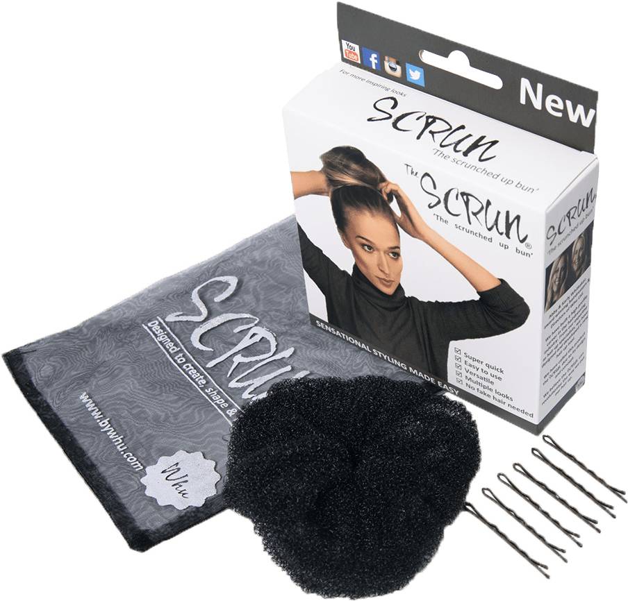 The Scrun is a hair tool that creates multiple hair up results with ease due to its built in hairband and its modifiable features. So, what's new about the product? Answer: the design. The Scrun is a multiple purpose tool and the low density of the product is a key in its concept. It is designed for structured or unstructured, textured/messy or smooth hair up looks. Because of its effective design, it is easy to use in fewer steps than with existing designs on the market. This is what makes the design of the Scrun so unique and novel.