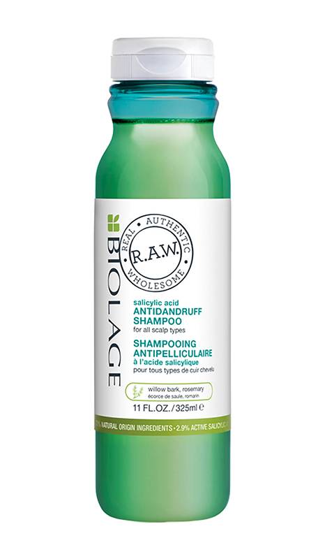 De-stress your scalp with Biolage RAW Anti Dandruff Shampoo. This scalp exfoliating treatment shampoo uses a unique combination of 2.9% active Salicylic Acid + Willow Bark in a first-of-its-kind natural origin formula, purifying flaky scalp and helping to eliminate dandruff.