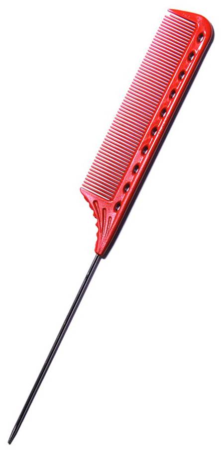 Basic pin tail comb made of high-grade super plastic used in the part of aircraft with excellent resistance to heat and chemical. Plastic-type ideal for winding and weaving. The one in Carbon Black contains carbon for anti-static. The shortened tooth on the edge of the comb called Parting Space Head for easy sectioning. The gaps between the teeth are getting narrower called Gradual Narrowing Pitch for even tension. It was developed with ideas from salon work and has been supported by many professionals around the world.