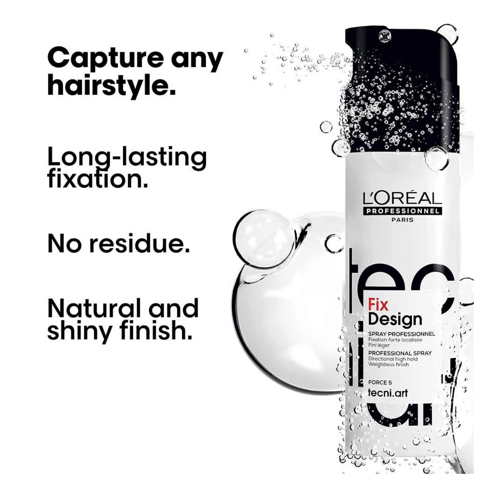 A directional fixing and finishing pump spray for high-precision application, Tecni.ART Fix Design by L'Oréal Professionnel gives your hair strong, long lasting hold without leaving any residue.