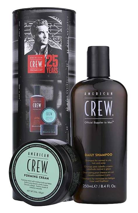 The American Crew Limited Edition 25th Anniversary Forming Cream Duo Gift Set is a two-piece gift set in a stylish Whiskey bottle tin.