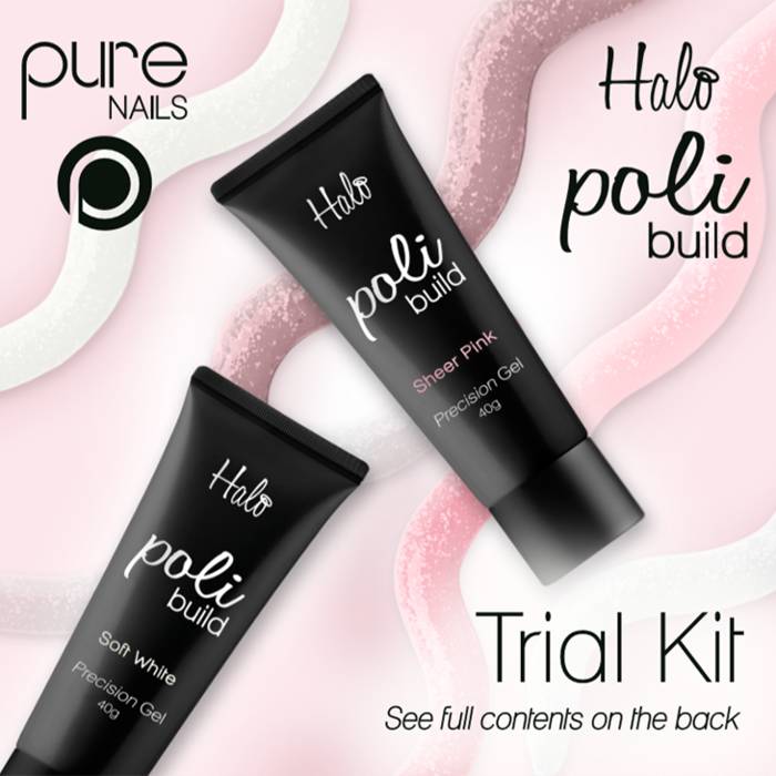 Halo PoliBuild is the brand-new product from Pure Nails that combines acrylic and hard gel to create a faultless all-in-one nail system. Halo PoliBuild provides a strong and flexible, light nail enhancement that is perfect for use with Halo Gel Polish.