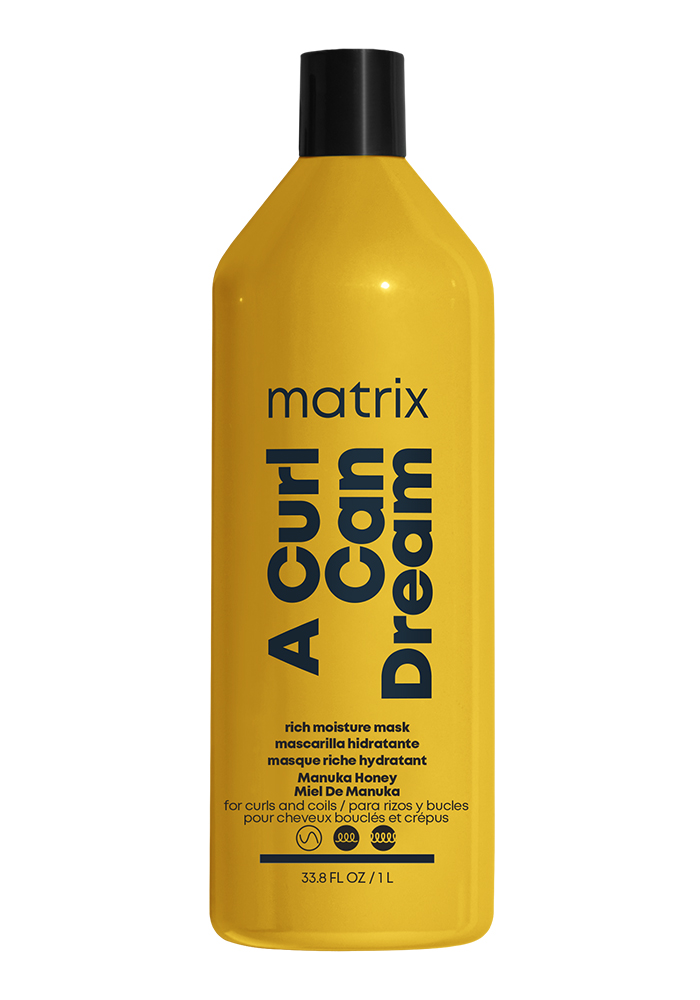 Matrix A Curl Can Dream Rich Mask for curls and coils, infused with Manuka Honey Extract. This curl preserving, rich mask conditions hair