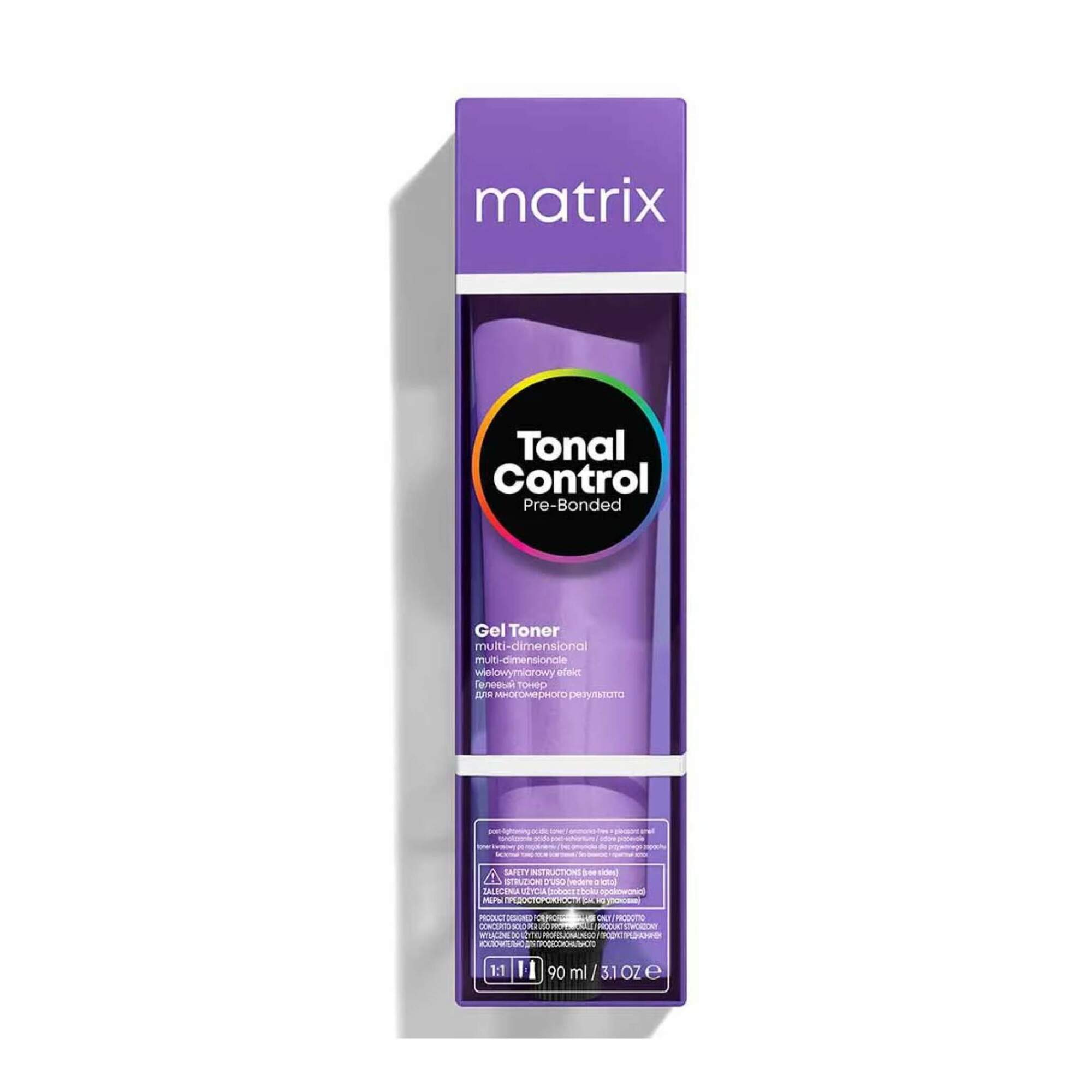 Matrix Tonal Control, our most predictable acidic gel toners for ultimate post-lightening control. This formula provides no lift and is Pre-Bonded with our exclusive Bond-Protecting Concentrate to help protect the inner hair structure. Our vegan and no ammonia toners provide real time visible oxidation to give you maximum control during processing time. Receive better value with a 90ml tube format, giving you 2x applications per tube.