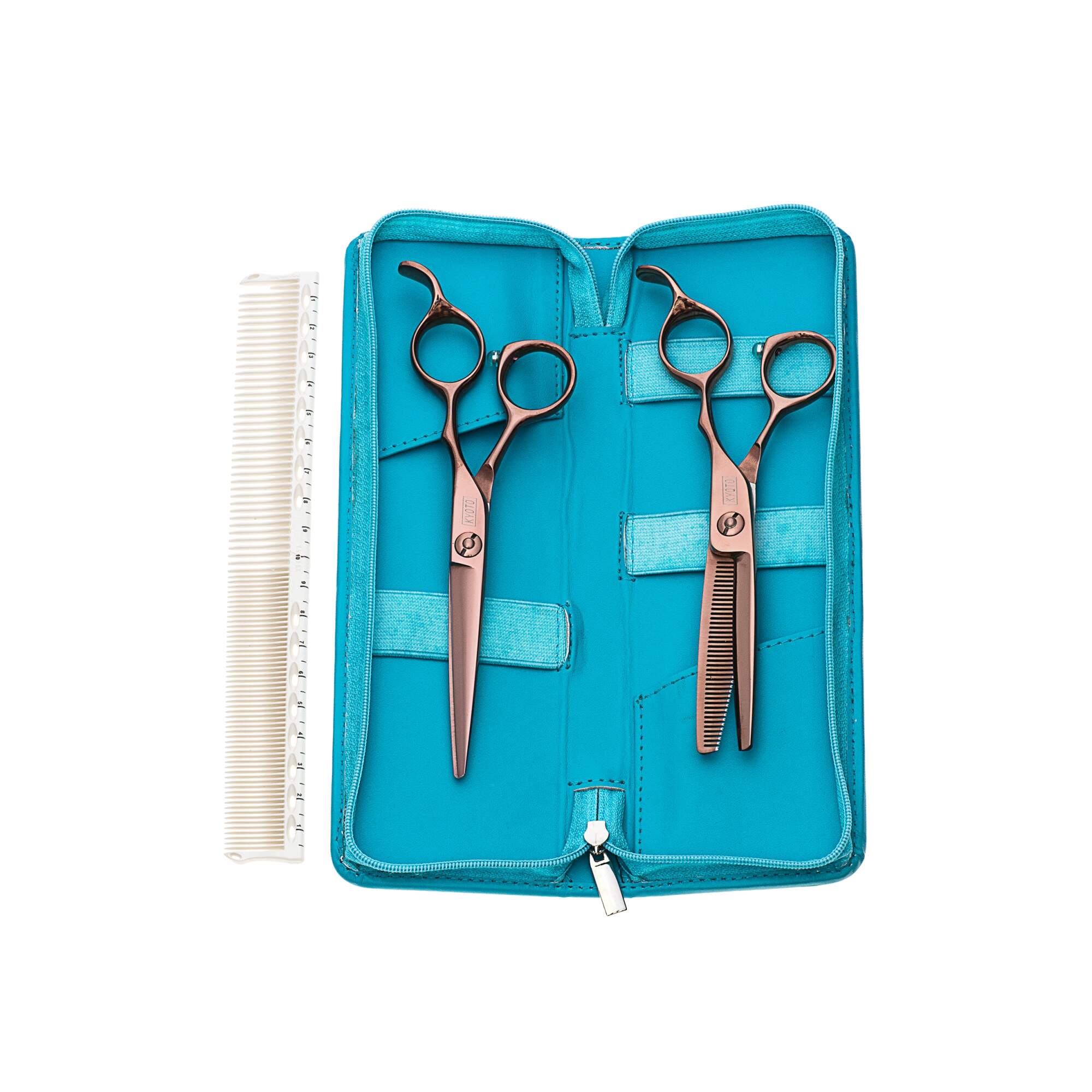KYOTO - KITS - Rose 6.5" Rose gold titanium coated cutting and thinning scissors YS Park G20 guide comb